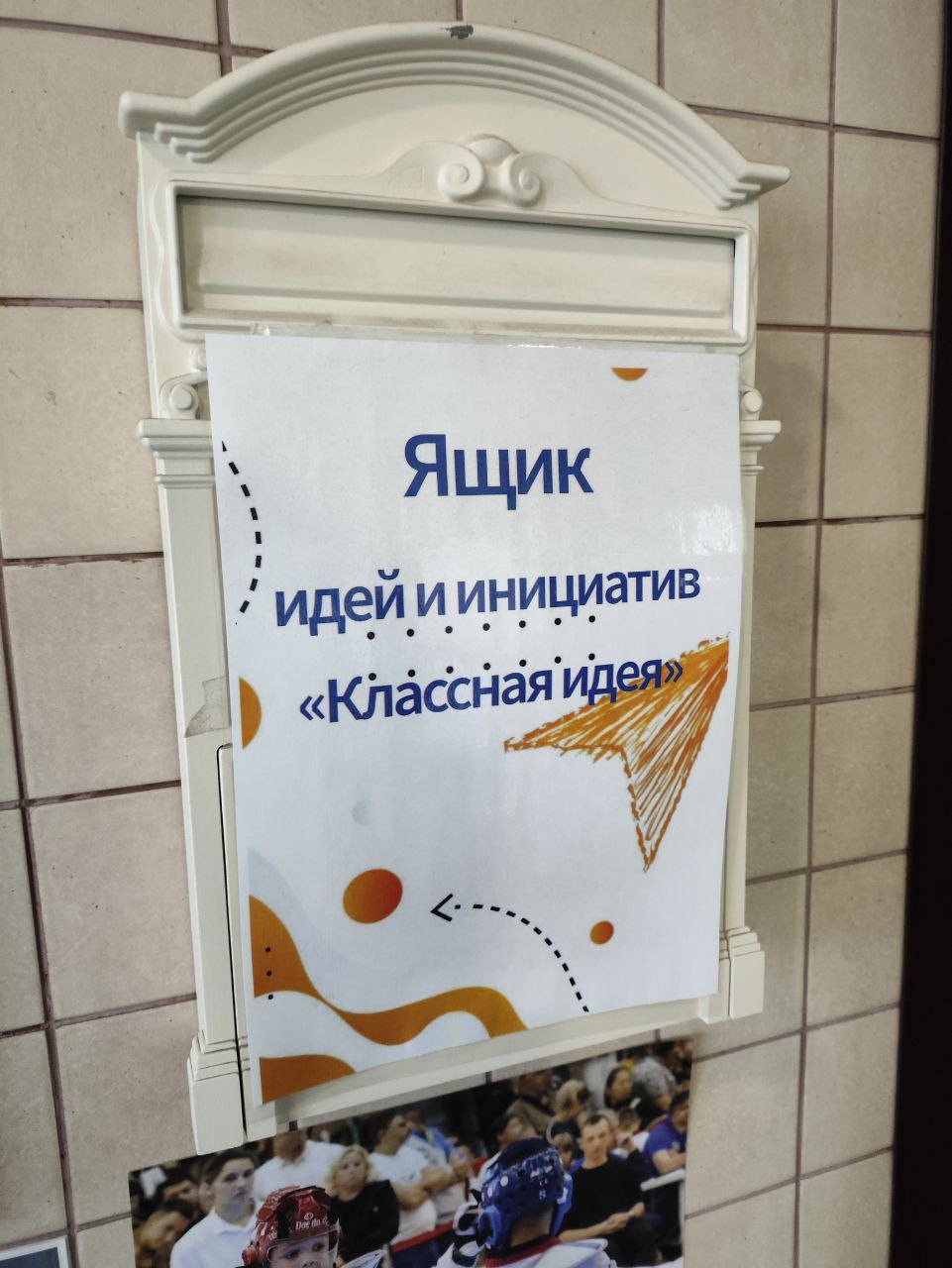 Вот такой чудный ящик для идей и инициатив висит в фойе школы младшего сына.