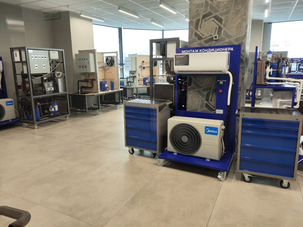 Масштабы центра поражают, если задуматься о вложенных в него ресурсах. На четырех этажах организовано 35 учебных цехов, в которых можно пройти обучение по 35 профессиям. Причем хотя цеха и учебные, оборудование там вполне настоящее, хотя, может, и не всегда самое навороченное.